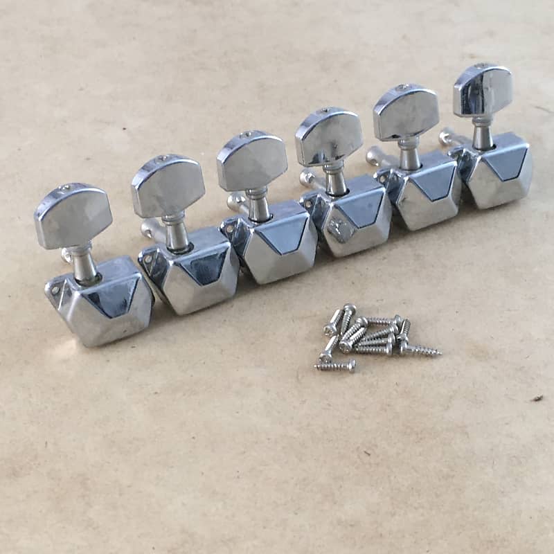 Rare Vintage Chrome Electric Guitar Tuners Set Slanted Sealed Reverb