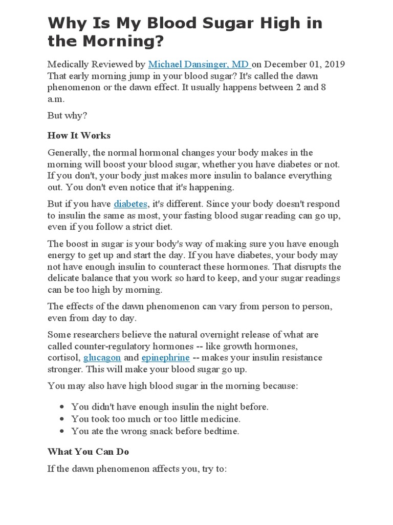 Why Is My Blood Sugar High in The Morning PDF Hyperglycemia