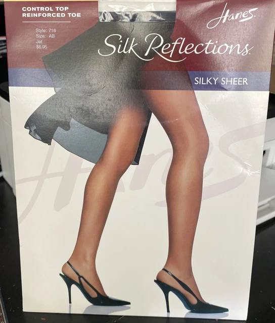 HANES SILK REFLECTIONS SILKY SHEER Size AB Jet Black Control Top