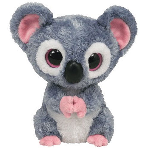Beanie Boos Koala Kookoo is a grey koala with white patches around his sparkly blue eyes and underneath his large black nose. She has glittery blue button eyes surrounded by white and a large black nose. Karli's birthday is on june 10th ; Karli is a grey koala covered in darker grey and pink speckles. She has pink paws and white, fluffy ears. Beanie Boos Koala.