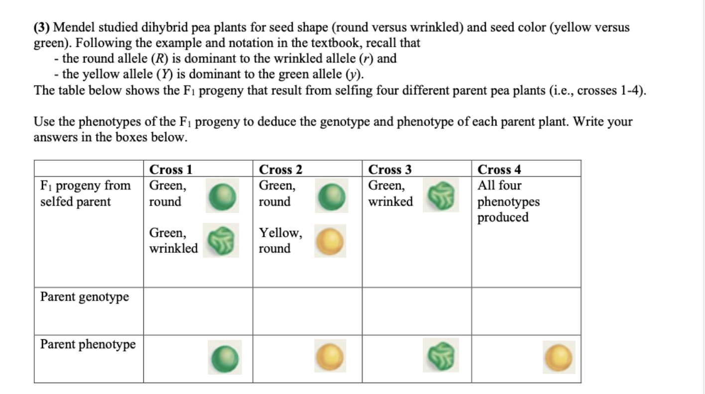 Solved (3) Mendel studied dihybrid pea plants for seed shape
