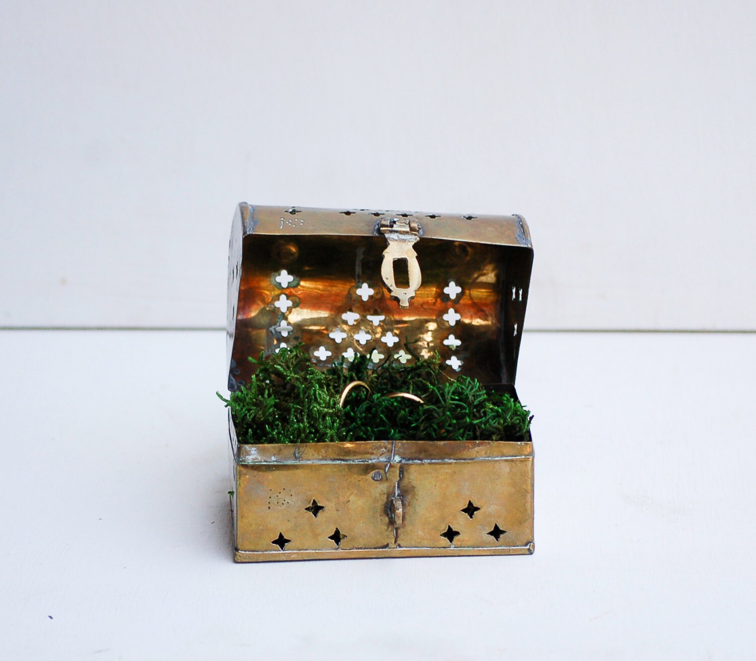 Rustic Ring Box Wedding Ring Holder Vintage Brass Cricket Box