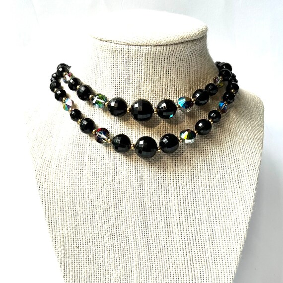 Vintage Black Crystal Necklace Gem
