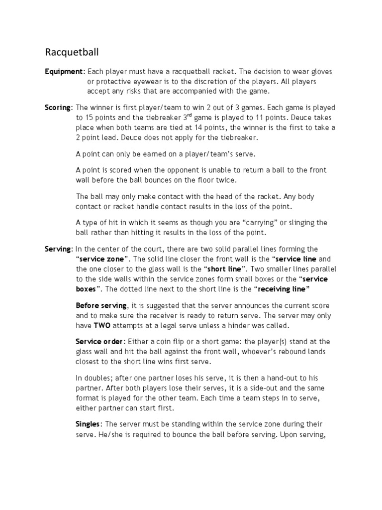 Racquetball Rules PDF Gaming Athletic Sports