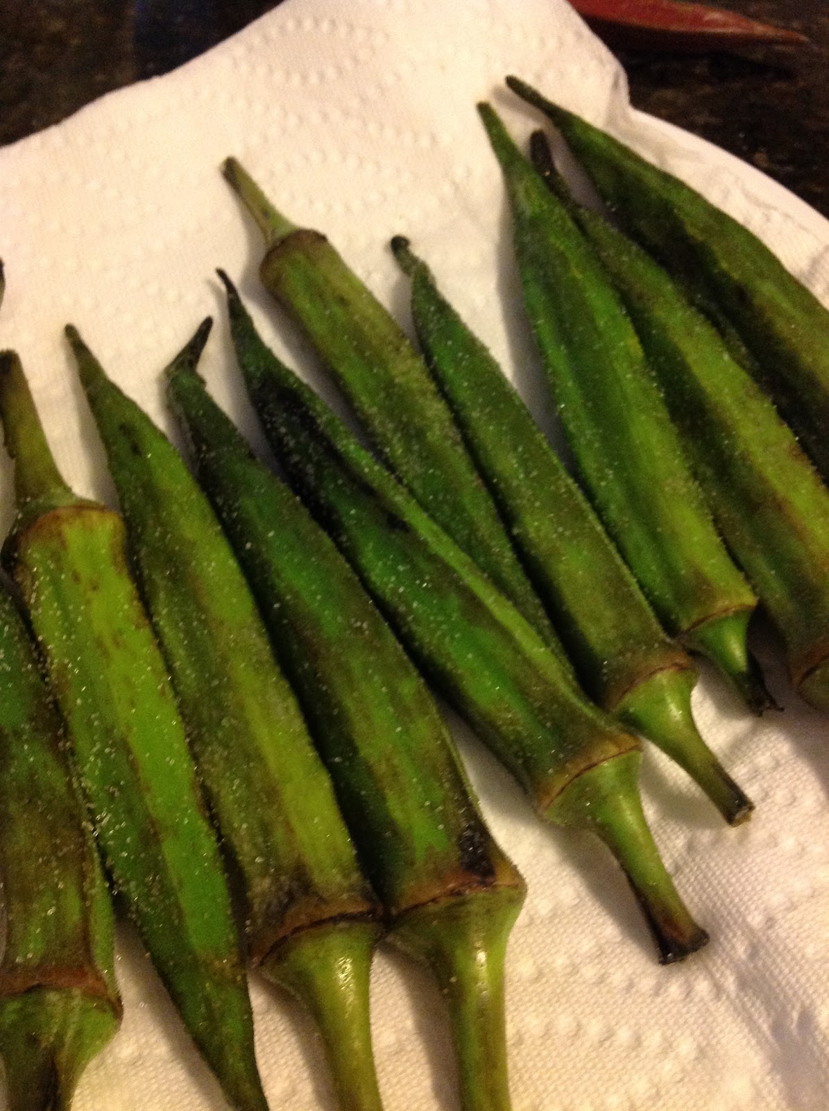 Crispy Oven Baked Okra Chips from Lana's Cooking Okra Bake Time One of my favorite things to eat. It can be made with fresh or frozen okra and only involves a few simple steps. Add any favorite spices if you like. Spread okra out evenly on baking sheet and don't crowd. Bake in a preheated oven at 400 f for 20 minutes, until it is dry and browned on the edges.. Okra Bake Time.
