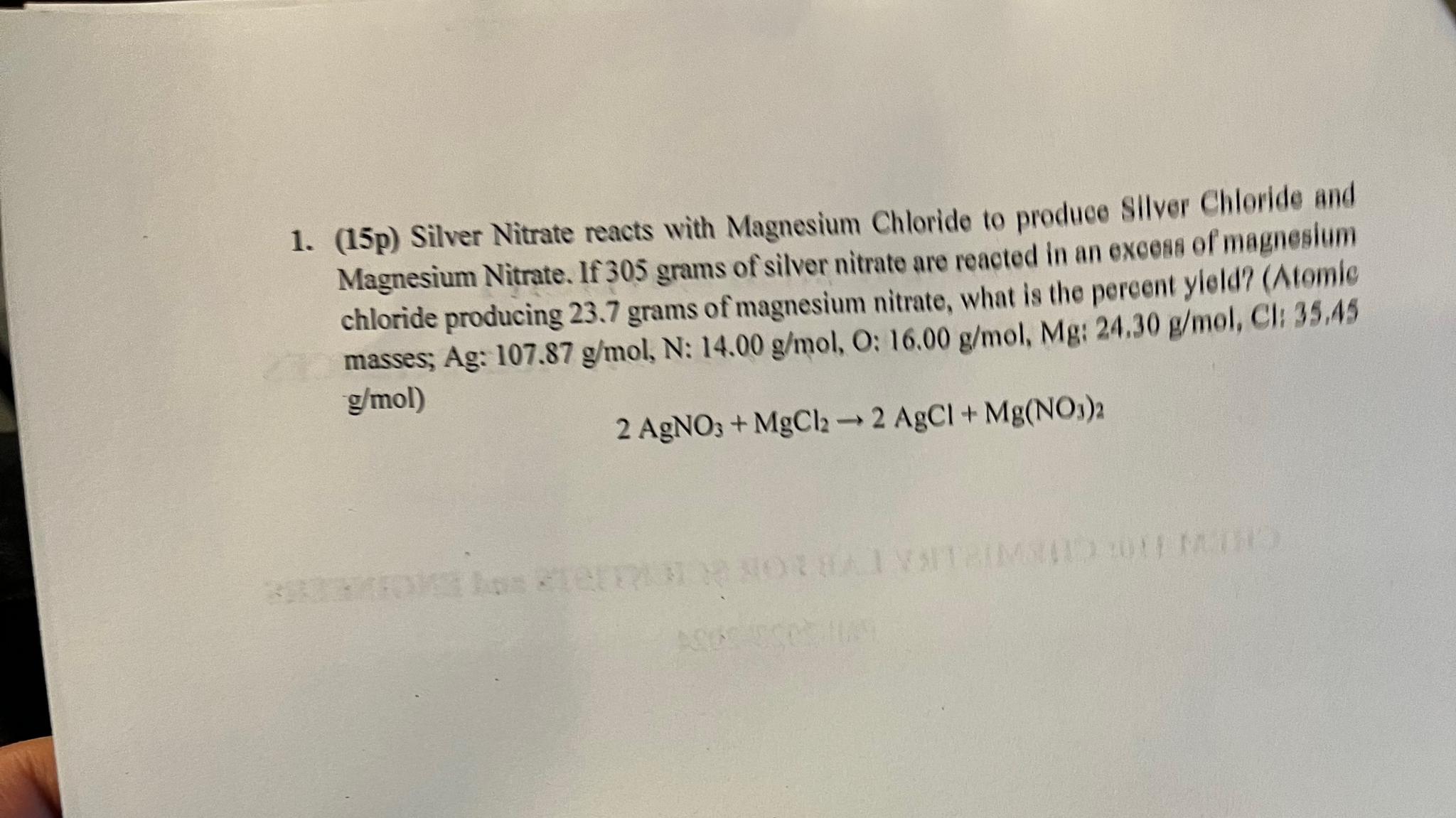 Solved (15p) Silver Nitrate reacts with Magnesium Chloride