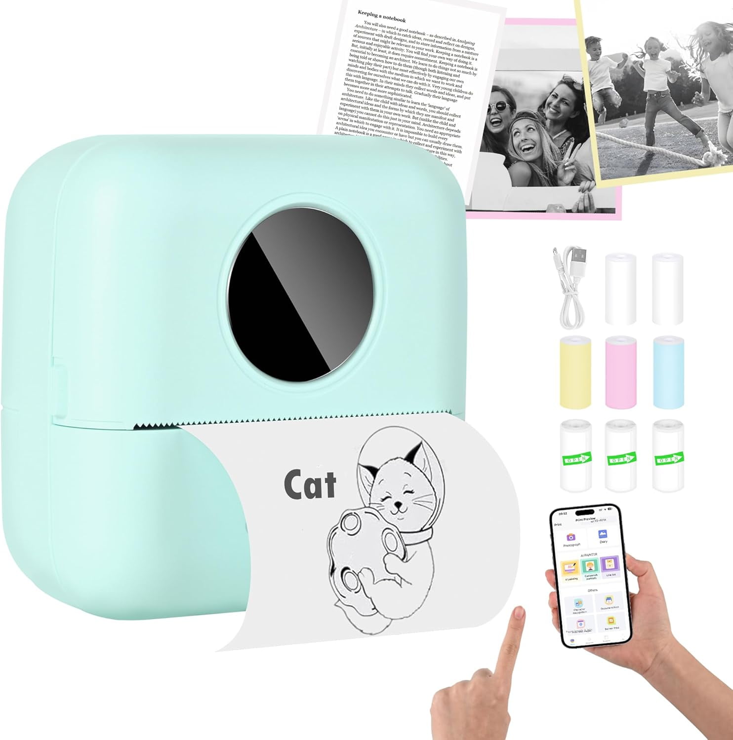 Mini Thermal Inkless Printer, Portable Sticker Printer with 5 Rolls Inkless Sticker Printer Phomemo t02 inkless mini printer. Say goodbye to ink cartridges, the phomemo. Phomemo mini printer, inkless sticker printer, t02 photo printer for smartphone, mini pocket label printer, thermal printer with 3 rolls of paper, 50. 87*90*40mm size and weighing only 150g, allowing to print anytime, anywhere. 87*90*40mm size and weighing only 150g, allowing to print anytime, anywhere. Phomemo t02 inkless. Inkless Sticker Printer.