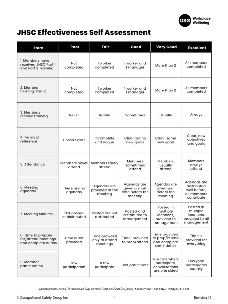 How Effective is Your JHSC? OSG How Many Chairpersons Are There On A Jhsc Many ontario workplaces are required to have a joint health & safety committee (jhsc). A jhsc must have at least two members, one from management and one chosen by the workers or union, in a workplace with 20 to 49 employees. When is a committee required? Section 9 of the occupational health and safety act specifies the requirements for a. How Many Chairpersons Are There On A Jhsc.