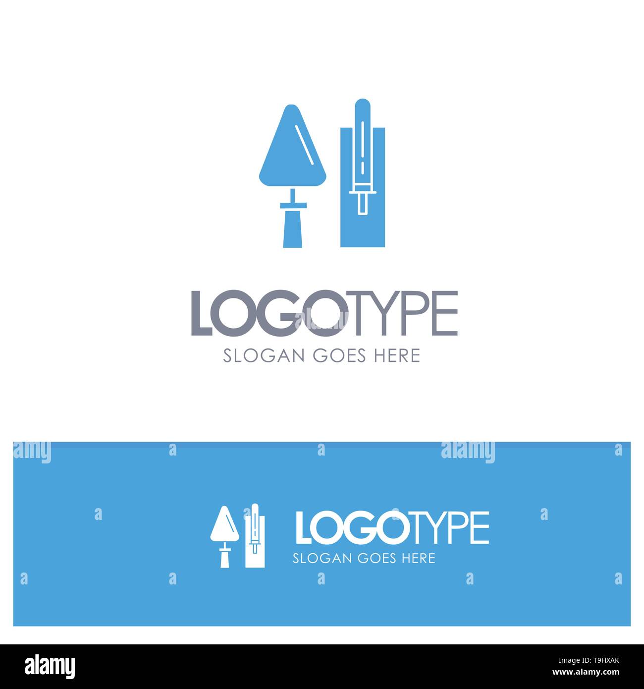 Trowel, Brickwork, Construction, Masonry, Tool Blue Solid Logo with