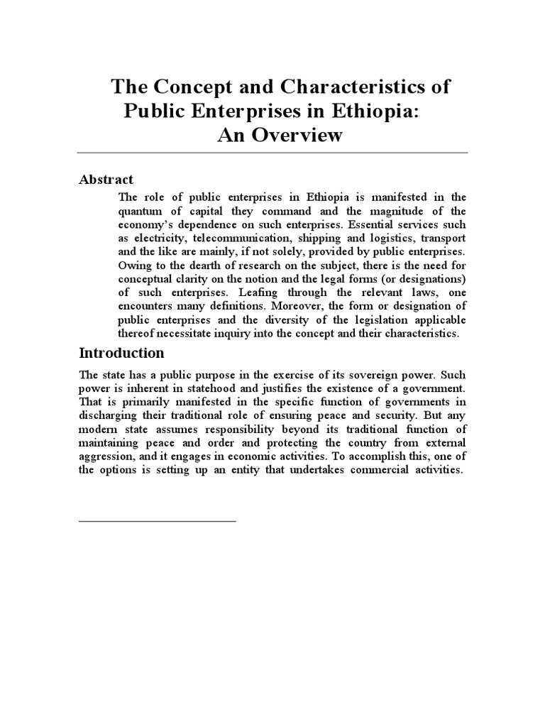 The Concept and Characteristics of Public Enterprises in Ethiopia An