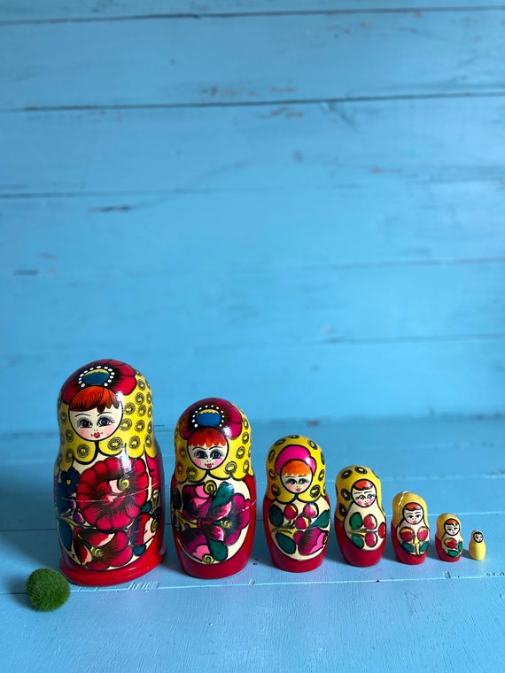 Vintage Large Russian Nesting Dolls Seven Dolls Matryoshka Etsy