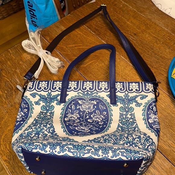 Mellow World Bags Nwt Mellow World Blue And White Spring Tote With