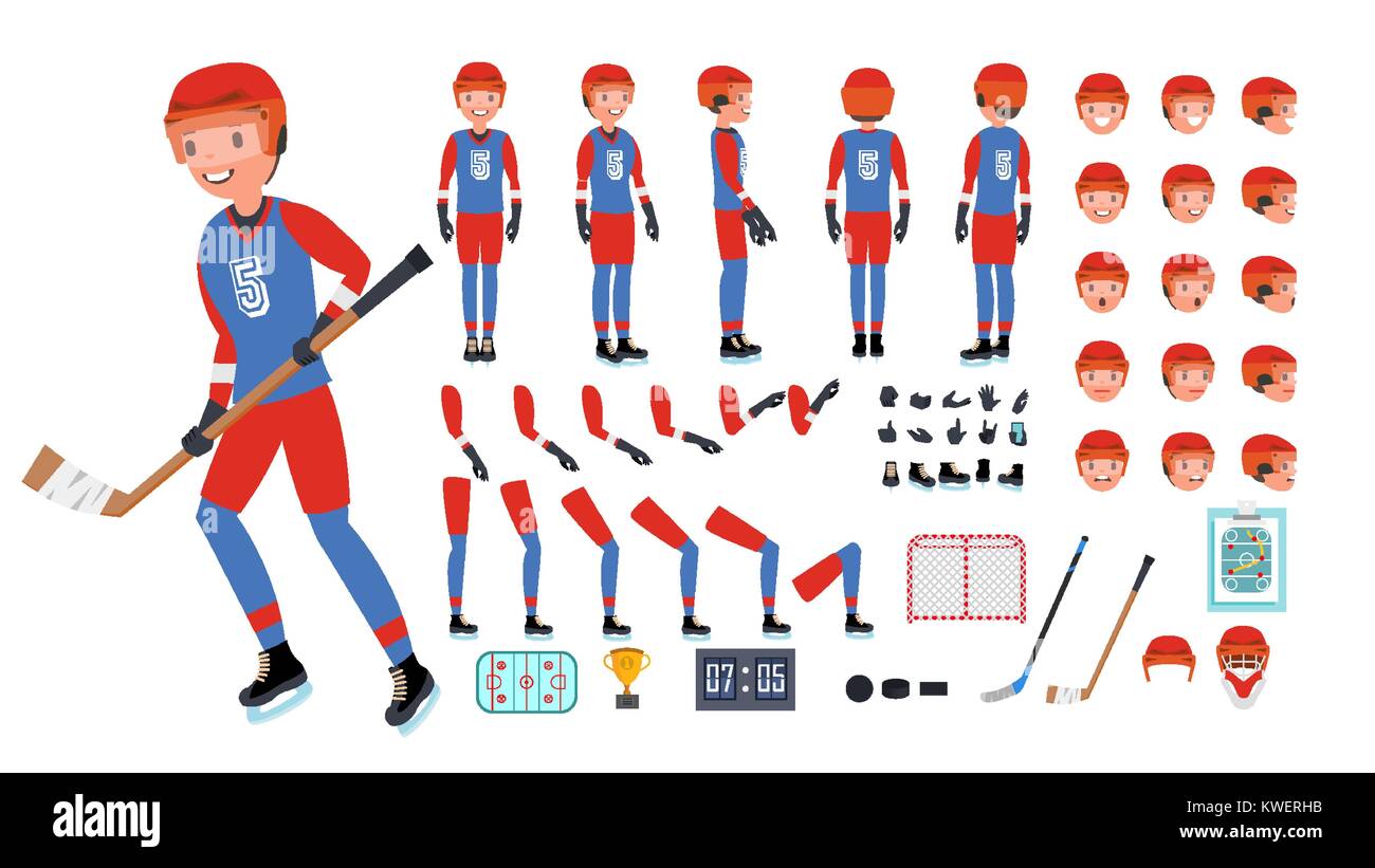Ice Hockey Player Vector. Animated Character Creation Set. Ice Hockey Ice Hockey Length For Player How to determine the right hockey stick size for you? What happens if i choose the wrong hockey. In addition to proper length, a good. Players between 5 to 6 feet: We will discuss the importance of choosing the right size hockey. A hockey stick typically measures up to 63 inches (160 cm) in length in the national hockey league. Ice Hockey Length For Player.