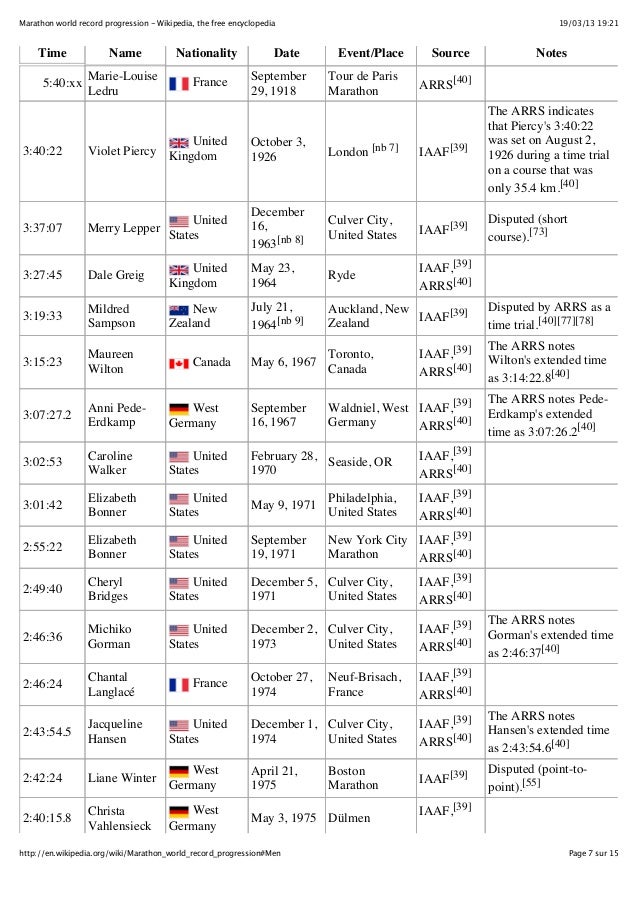 Marathon world record progression wikipedia, the free encyclopedia