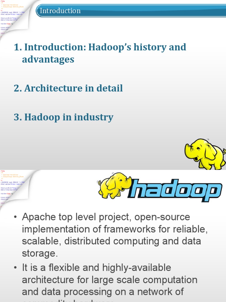 Apache Hadoop IT Benefits Of Hadoop Cluster Portrait PDF Apache Hadoop Benefits The hadoop distributed file system (hdfs) provides reliability and resiliency by. Apache hadoop is an open source framework that is used to efficiently store and process large datasets ranging in size from gigabytes to. Apache hadoop brings several advantages in dealing with big data, and it’s an. Hadoop is a framework in the sense that it provides a layer of. Apache Hadoop Benefits.