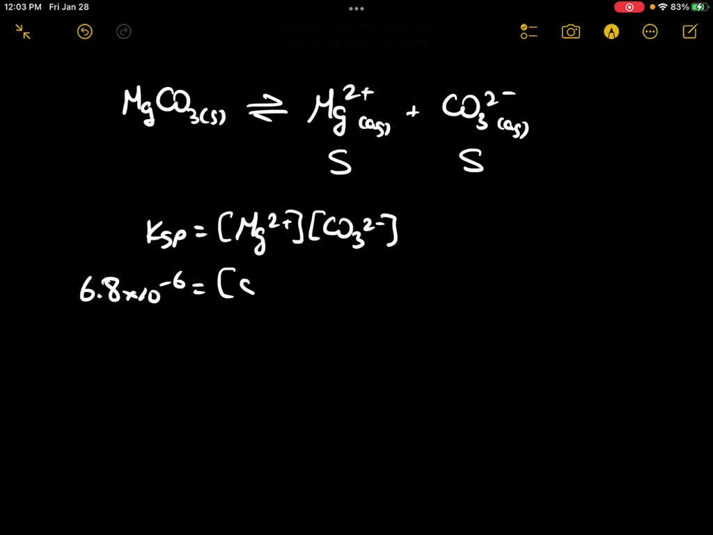 SOLVED The molar solubility of magnesium carbonate in a water solution Magnesium Carbonate In Water Equation In this video we will describe the equation mgco3 + h2o and write what happens when mgco3 is. When carbon dioxide is dissolved in an aqueous solution of sodium hydroxide, the mixture reacts to yield aqueous sodium carbonate and liquid. Enter an equation of an ionic chemical equation and press the balance button. One mole of magnesium carbonate [mgco 3]. Magnesium Carbonate In Water Equation.