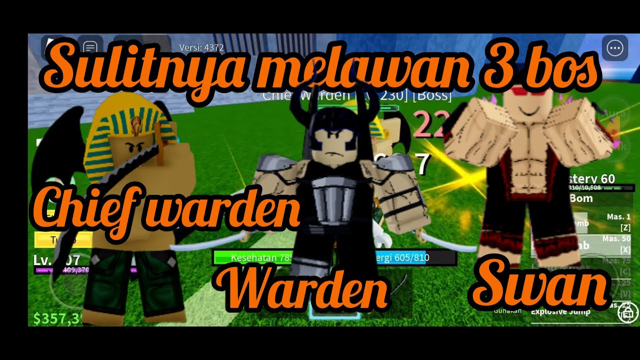 roblox!!blox fruits sulitnya lawan 3 bos!! bos swan chief warden dan