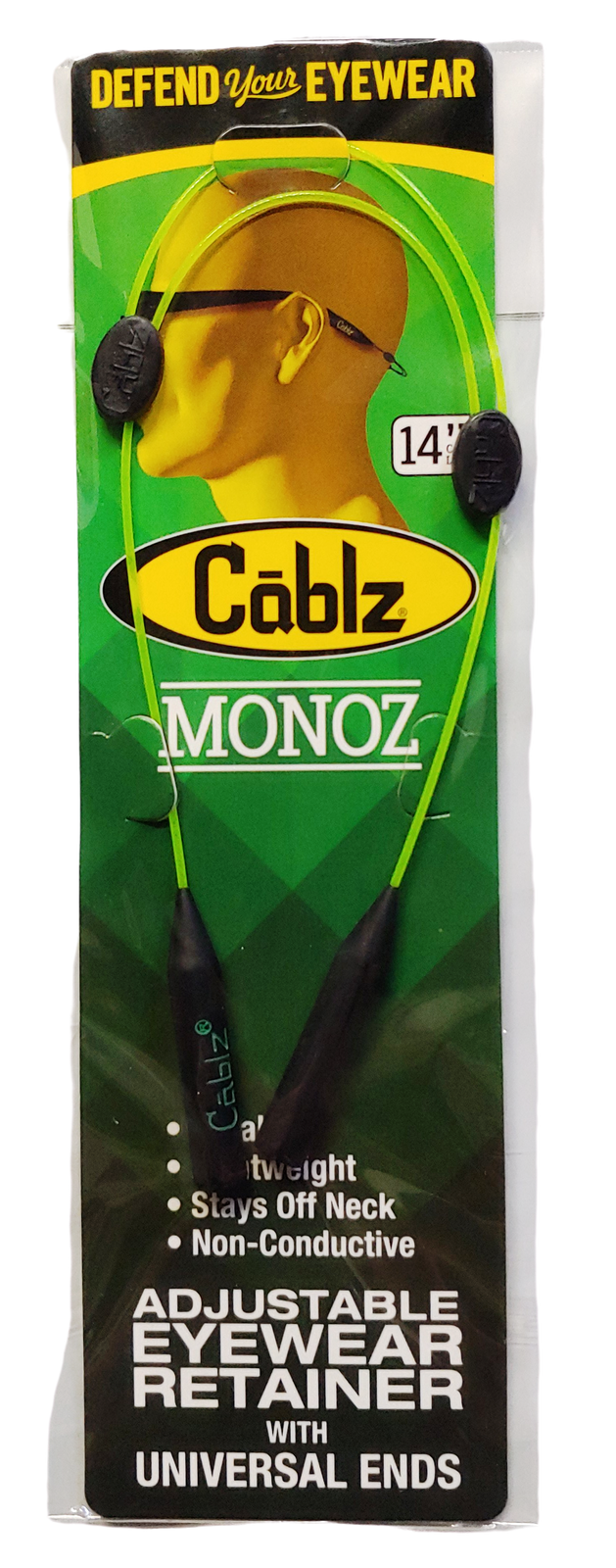 Cablz Monoz Adjustable Zipz 14" Retainer Green Sunglasses Holder Strap