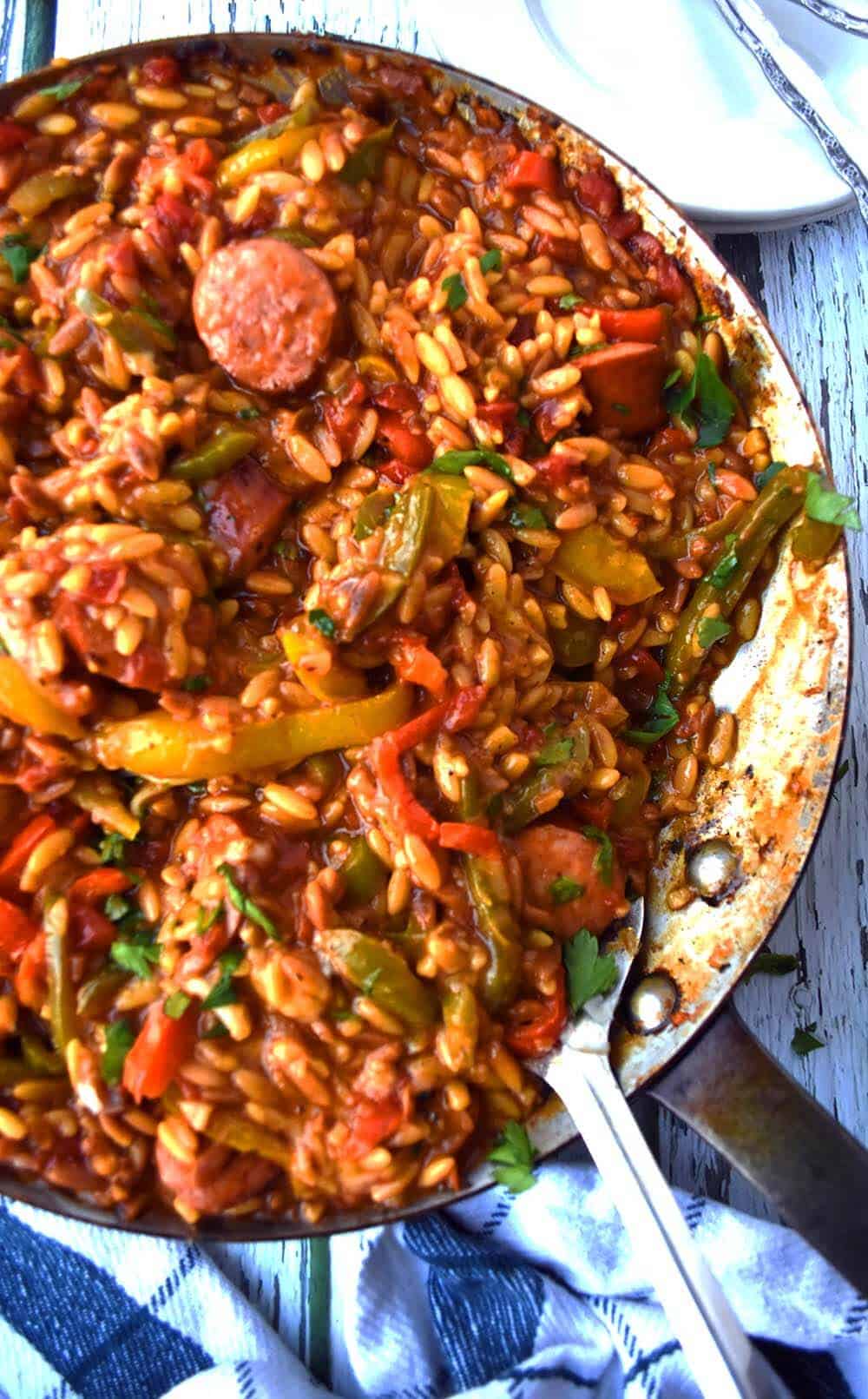 Sausage Orzo Skillet Weekend at the Cottage Sausage And Chorizo Orzo You’ve all loved my original sausage pasta recipe, so i knew we needed an orzo version. It is quick and easy to. In 30 minutes you can make this one pot italian sausage orzo recipe! This is a delicious one pot sausage & chorizo orzo recipe. It has tender italian sausage, fresh spinach, and orzo smothered in a creamy parmesan. Sausage And Chorizo Orzo.
