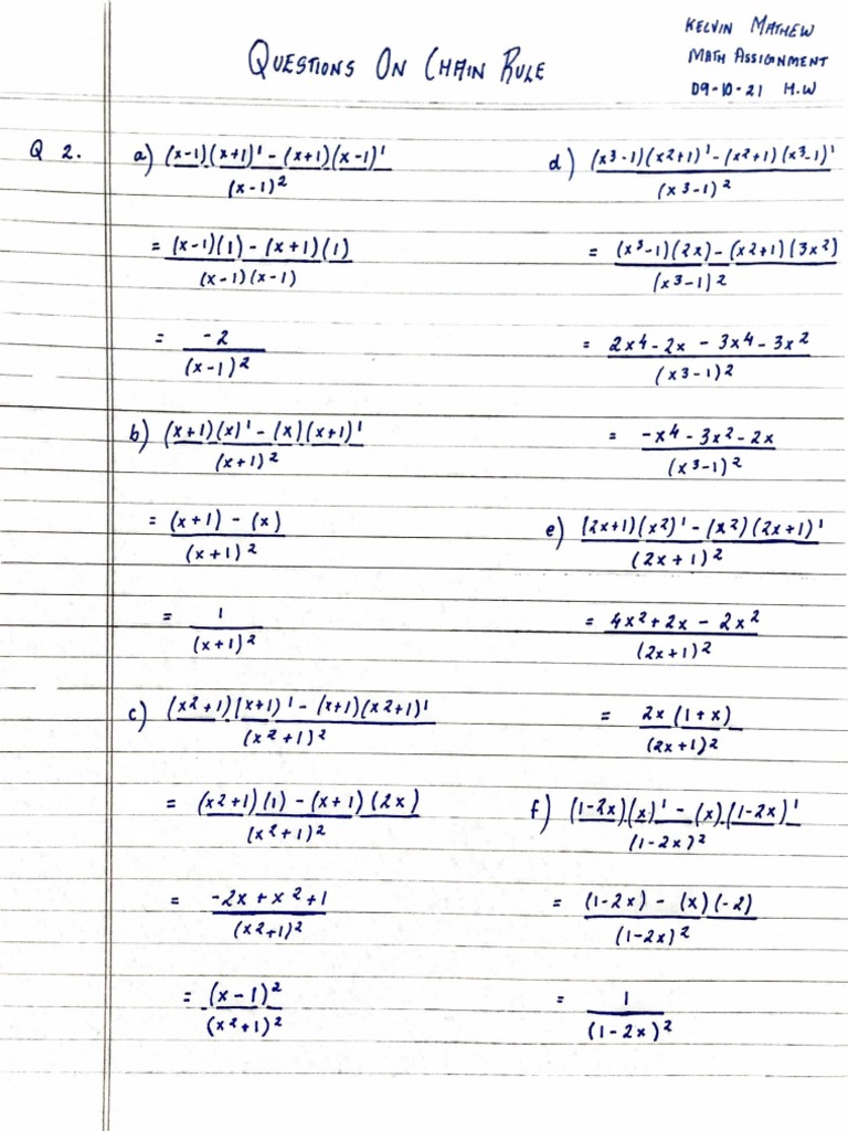 Chain Rule Questions PDF