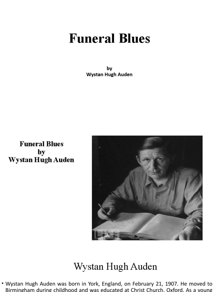 An Analysis of W. H. Auden's Poem 'Funeral Blues' PDF Poetry Funeral Blues Analysis Powerpoint explore the emotional depth and literary prowess of w.h. the poem funeral blues by w.h. Funeral blues analysis is the property of its rightful owner. ‘blues’ is an american word for a sad song. Blue is a colour that we associate. pptx, 12.59 mb. A full study guide for the poem ‘funeral blues’ by w.h. To convey. Funeral Blues Analysis Powerpoint.