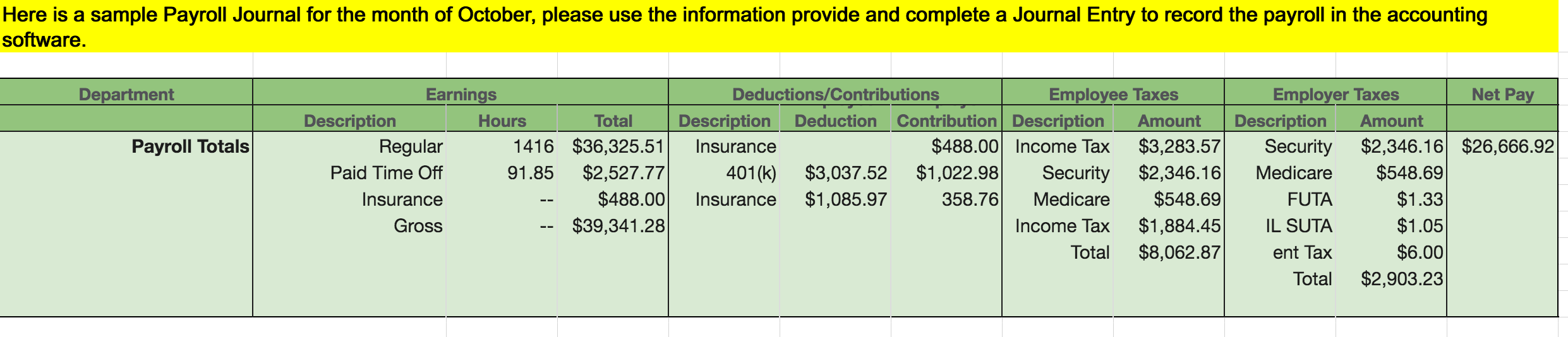 Here is a sample Payroll Journal for the month of