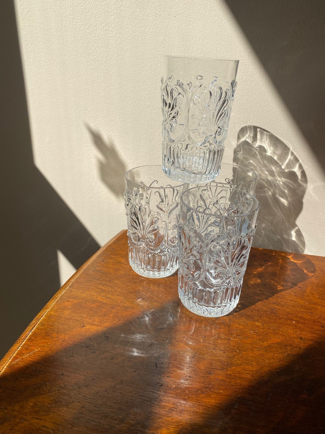 Vintage Shell Embossed Bar Glassware Set of 4 Etsy