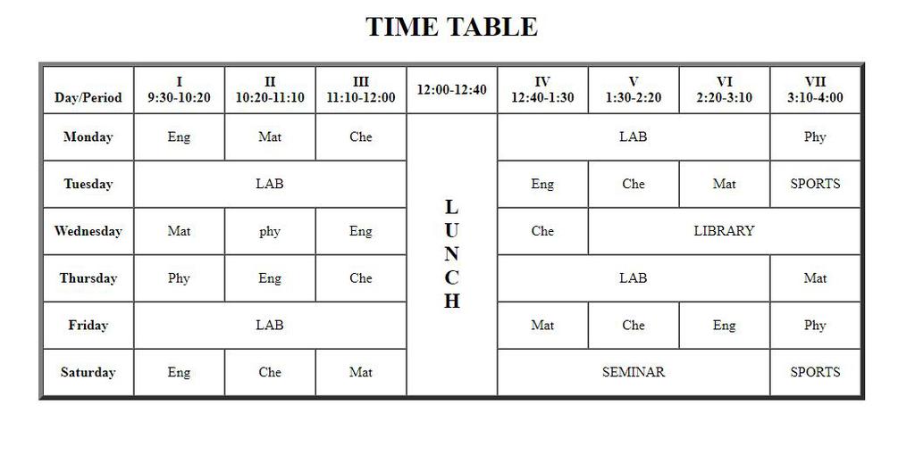 How to Create TimeTable schedule using HTML ?