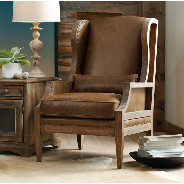 Hooker Furniture Laurel 28" Wide Genuine Leather Wingback Chair & Reviews Wayfair