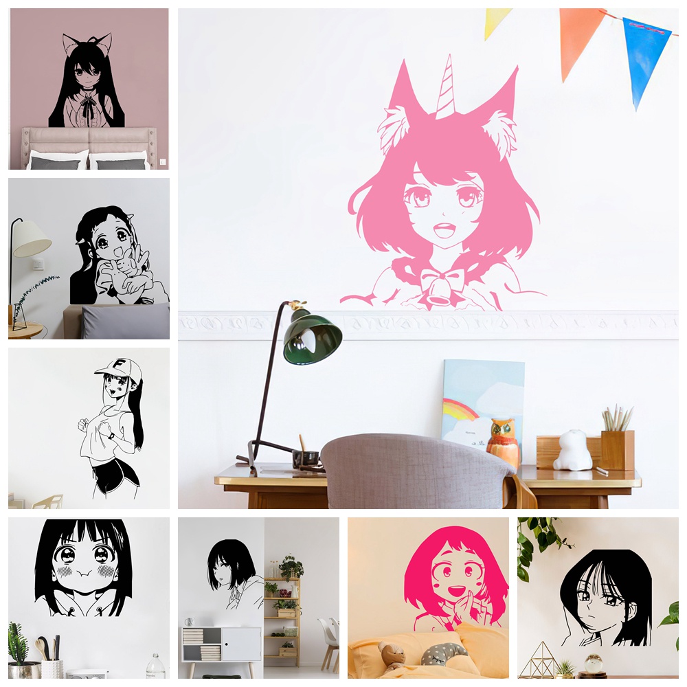 Cartoon Anime cute Girl Wall Art Decal Pvc Material Wall Stickers For