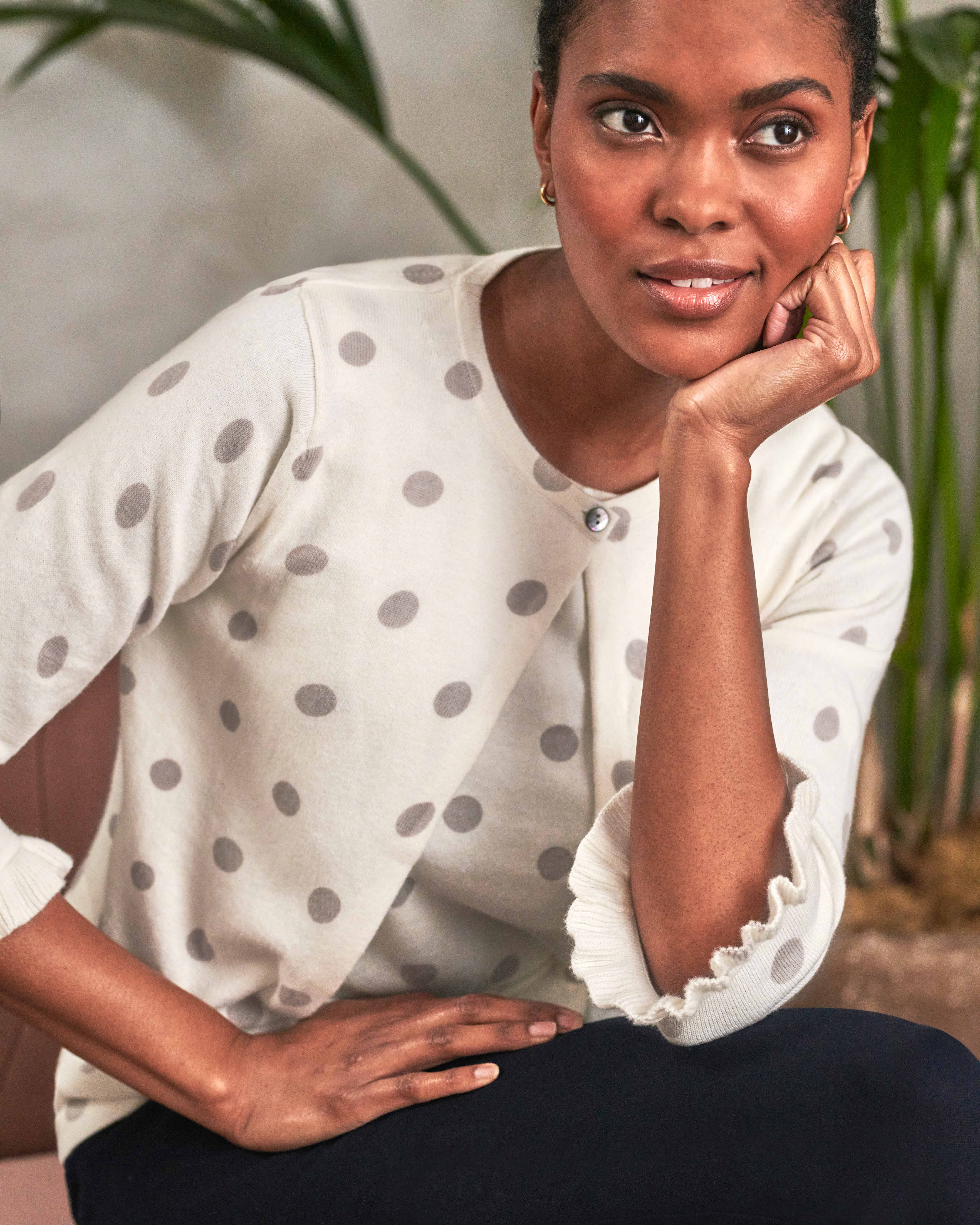 Optic White/ Grey Spot Ruffle Cuff Shrug Cardigan Pure Collection