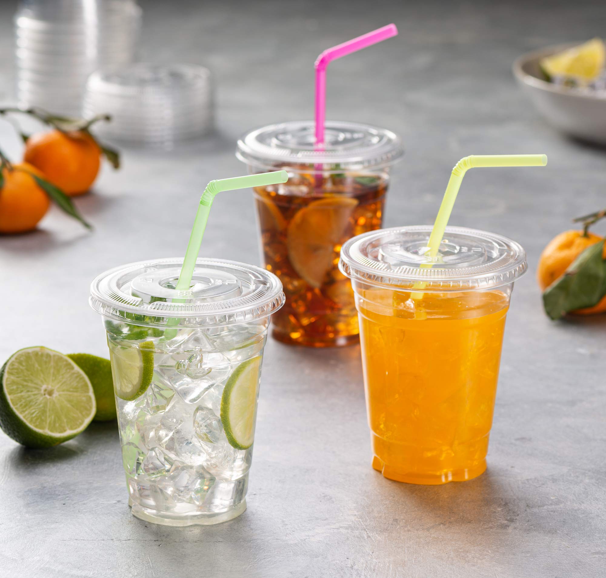 [50 Sets 16 Oz] Crystal Clear PET Plastic Cups With Flat lids for