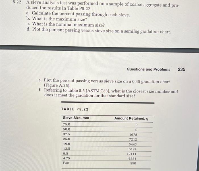 Solved 1.22 A sieve analysis test was performed on a sample