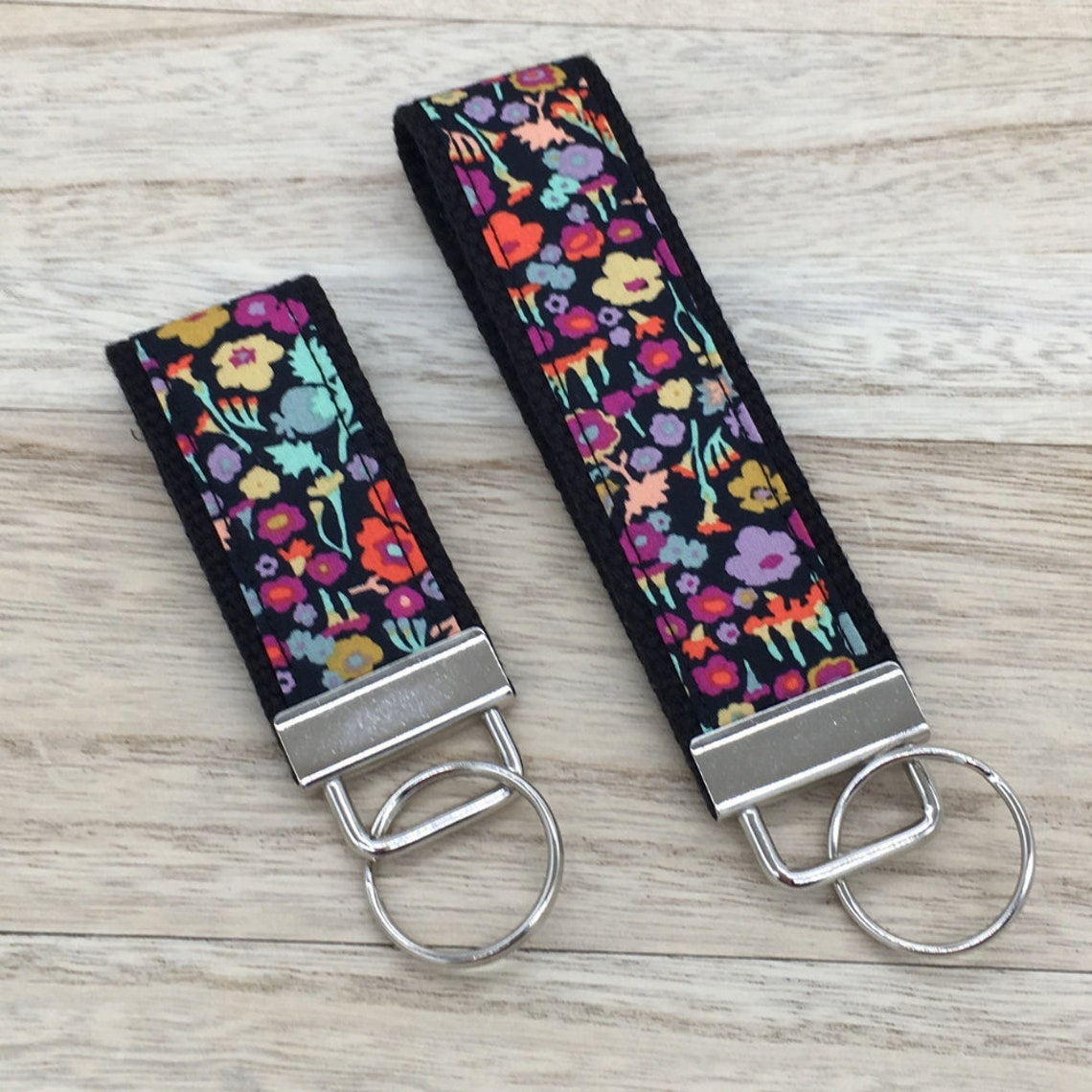 Floral Key Fob Mini Key Fob Flowers Keychain Set Black Key Etsy