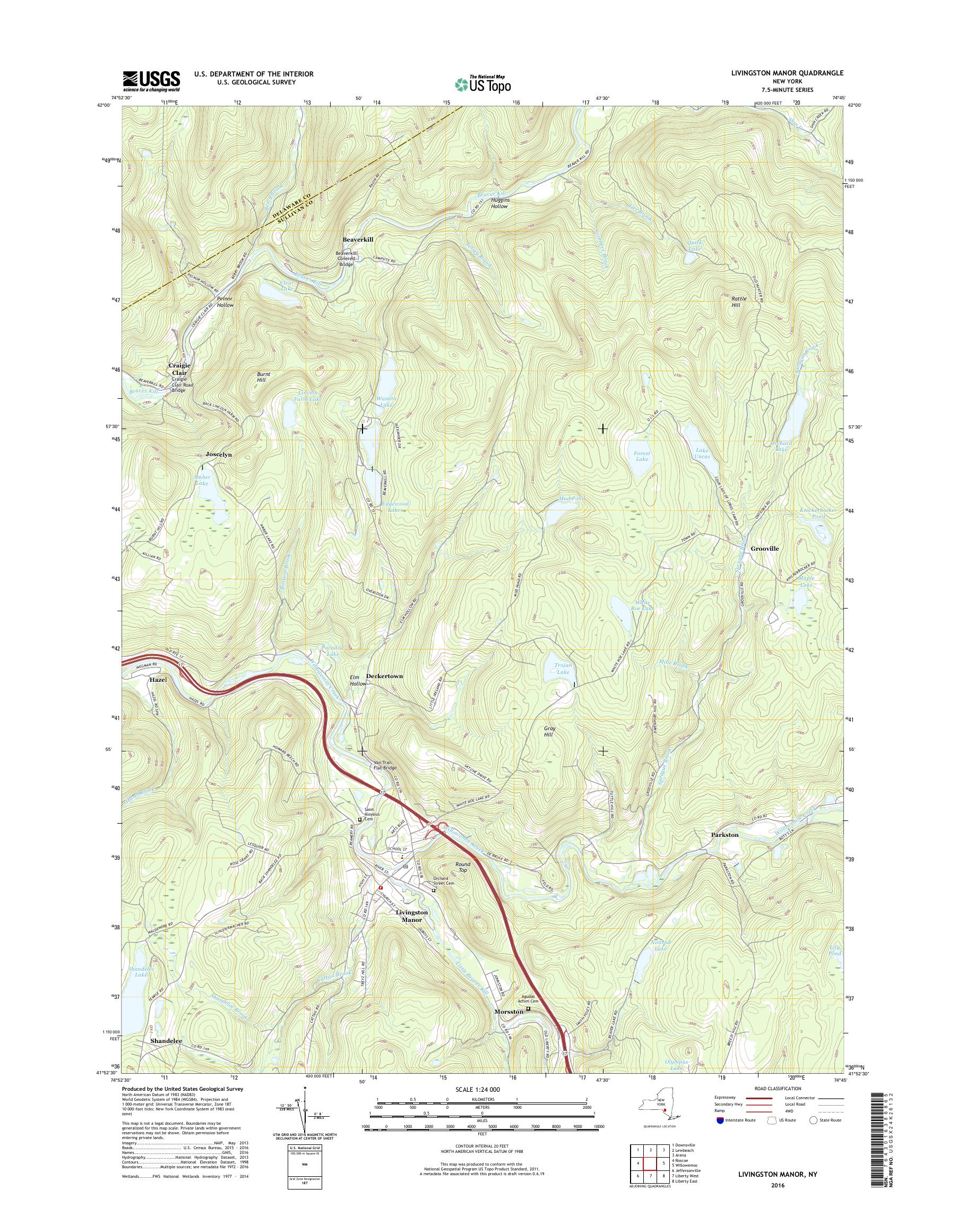 MyTopo Livingston Manor, New York USGS Quad Topo Map