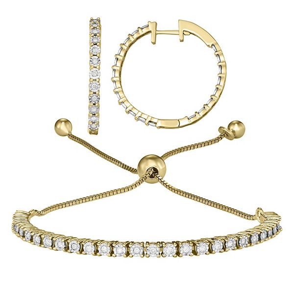 Sterling Silver 1/2 Carat T.W. Diamond Adjustable Bracelet & Hoop