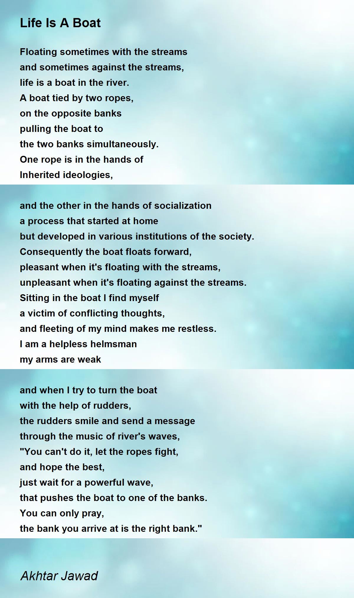Life Is A Boat Life Is A Boat Poem by Akhtar Jawad