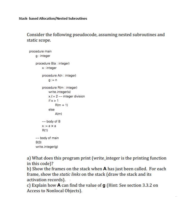 Solved Stackbased Allocation/Nested Subroutines Consider