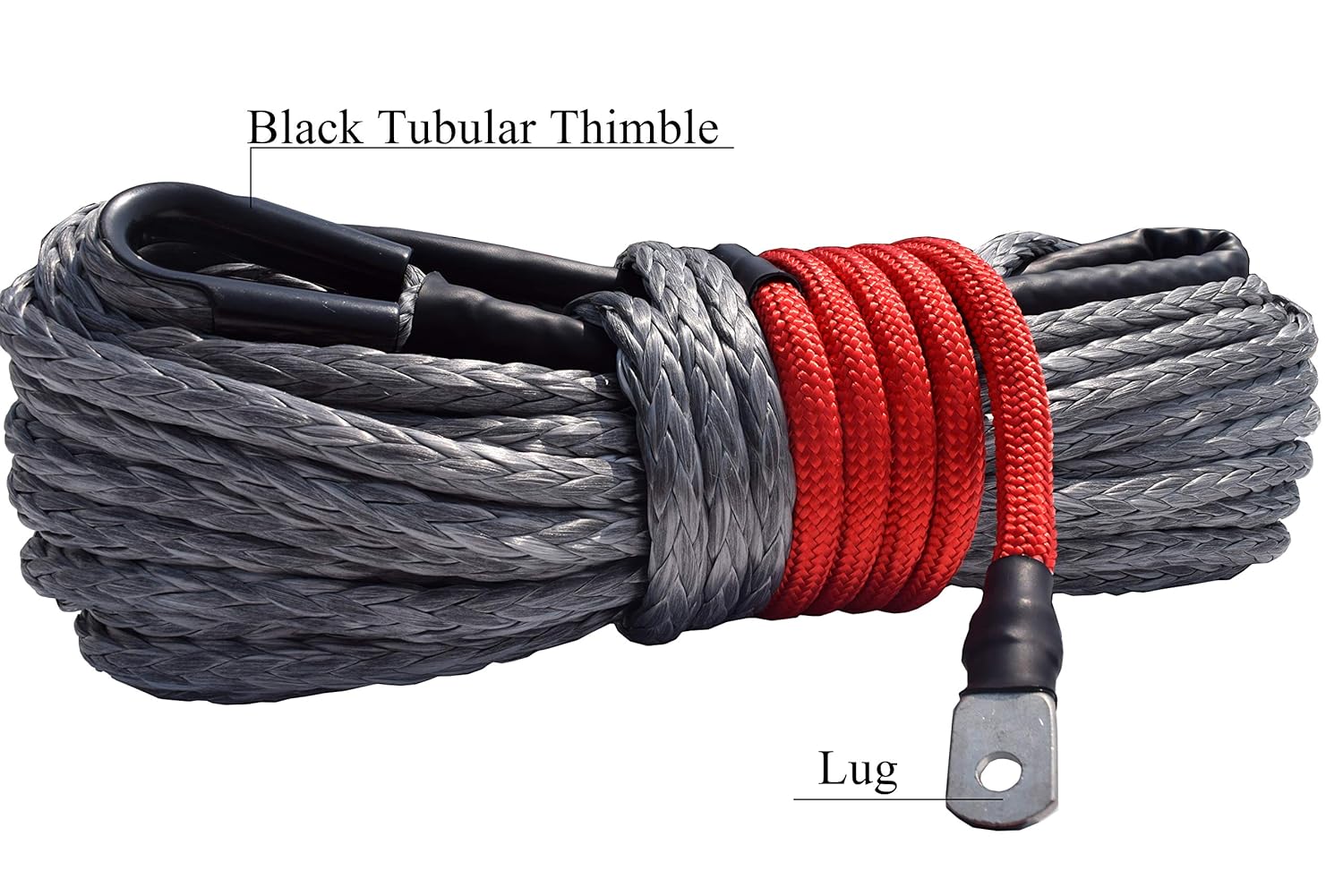 1/2×94ft, Grey 1/2×94ft Synthetic Winch Rope with Tube Thimble,ATV