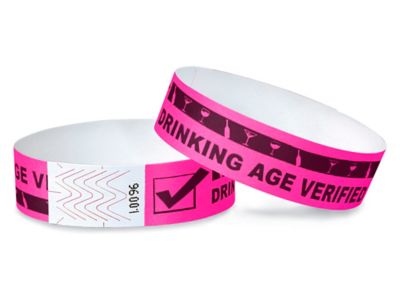 Tyvek® Wristbands "Drinking Age Verified", Neon Pink S15235P Uline