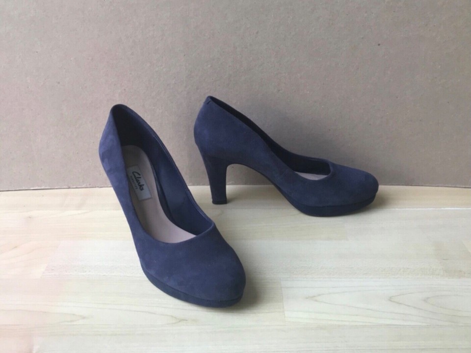 Clarks Narrative Women’s Blue Suede Platform Court Shoes Size UK 5 D