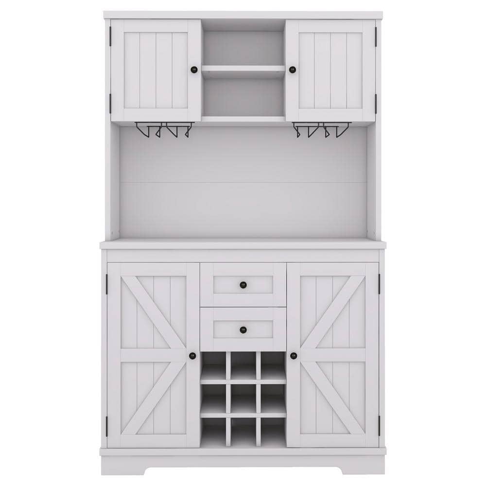 Cesicia Off White Wood 47 in. W Farmhouse Kitchen Pantry with