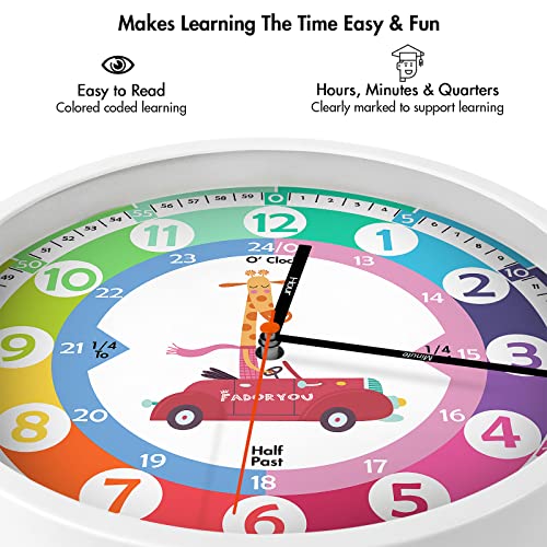 Fadoryou Learning Clock for Kids, Telling Time Teaching Clock, Silent