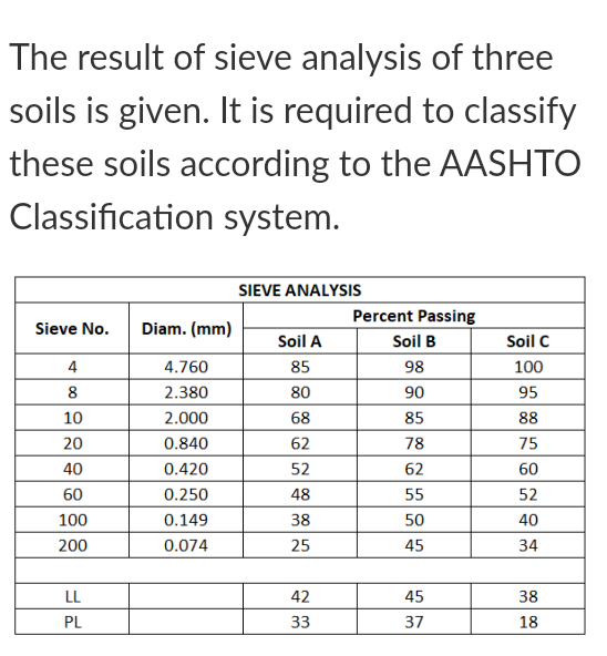 Solved The result of sieve analysis of three soils is given.