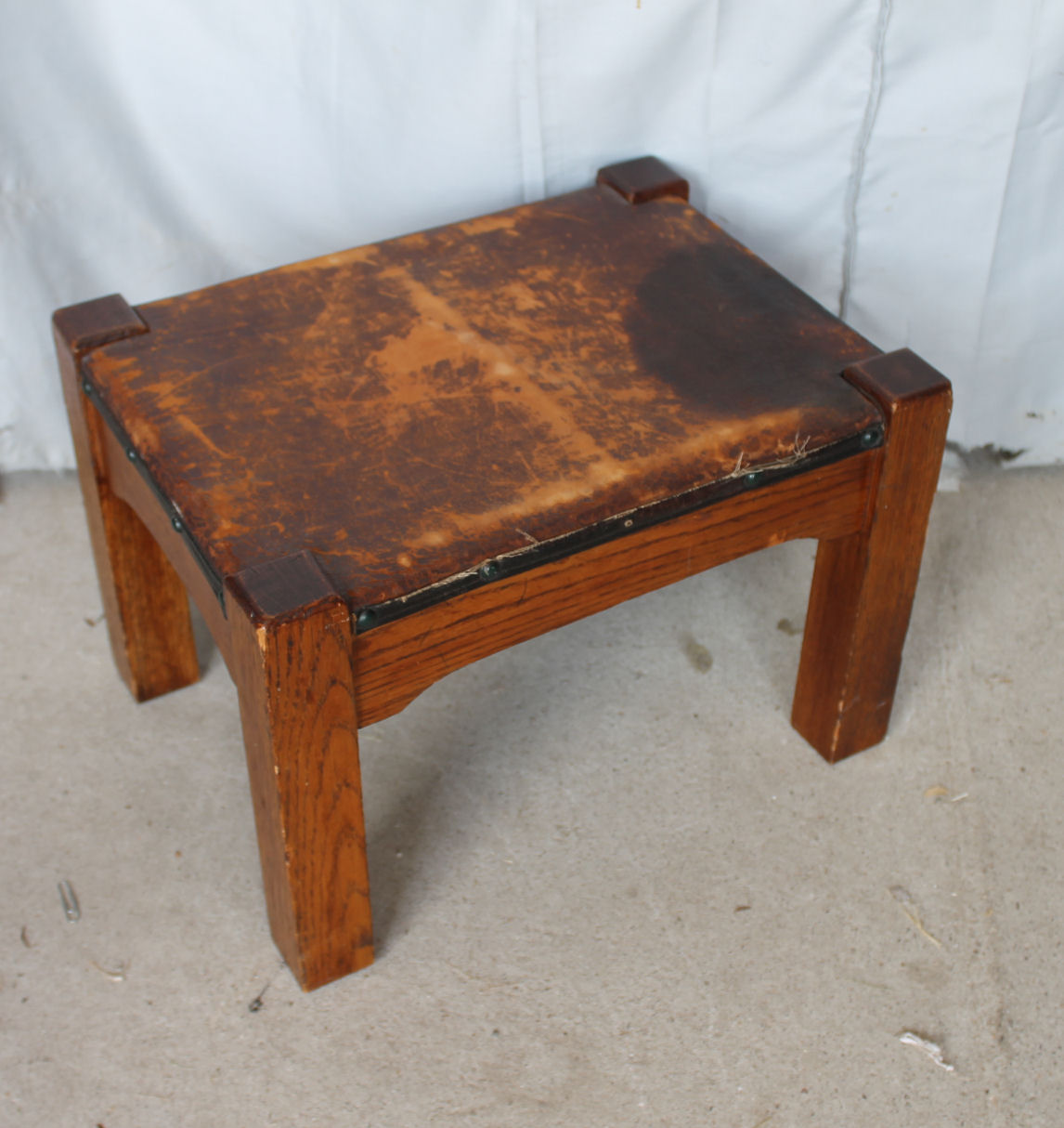 Bargain John's Antiques Mission Oak Footstool Leather Bargain John's Antiques