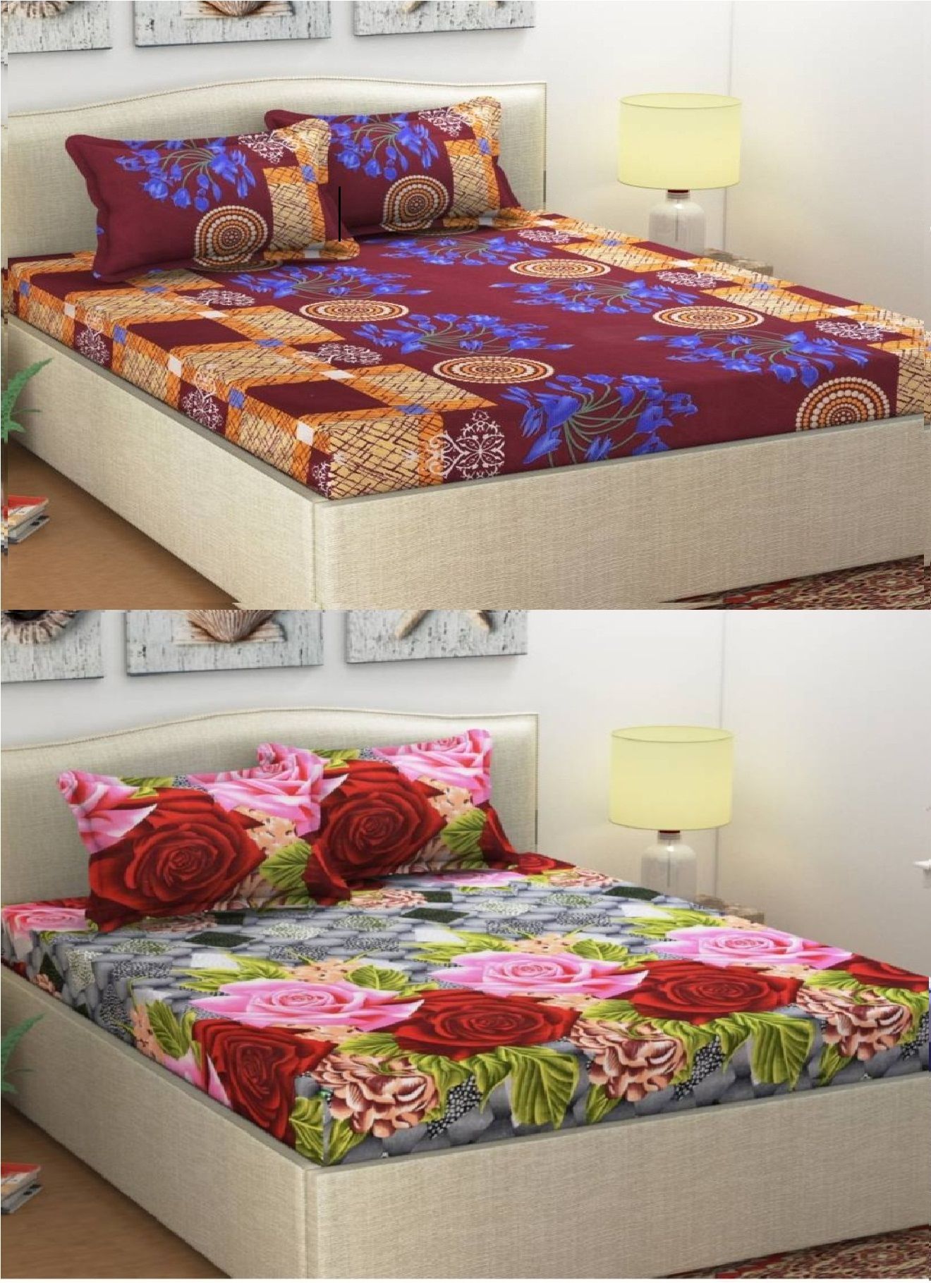 Home Pictures Poly Cotton 2 Double Bedsheets with 4 Pillow Covers Buy