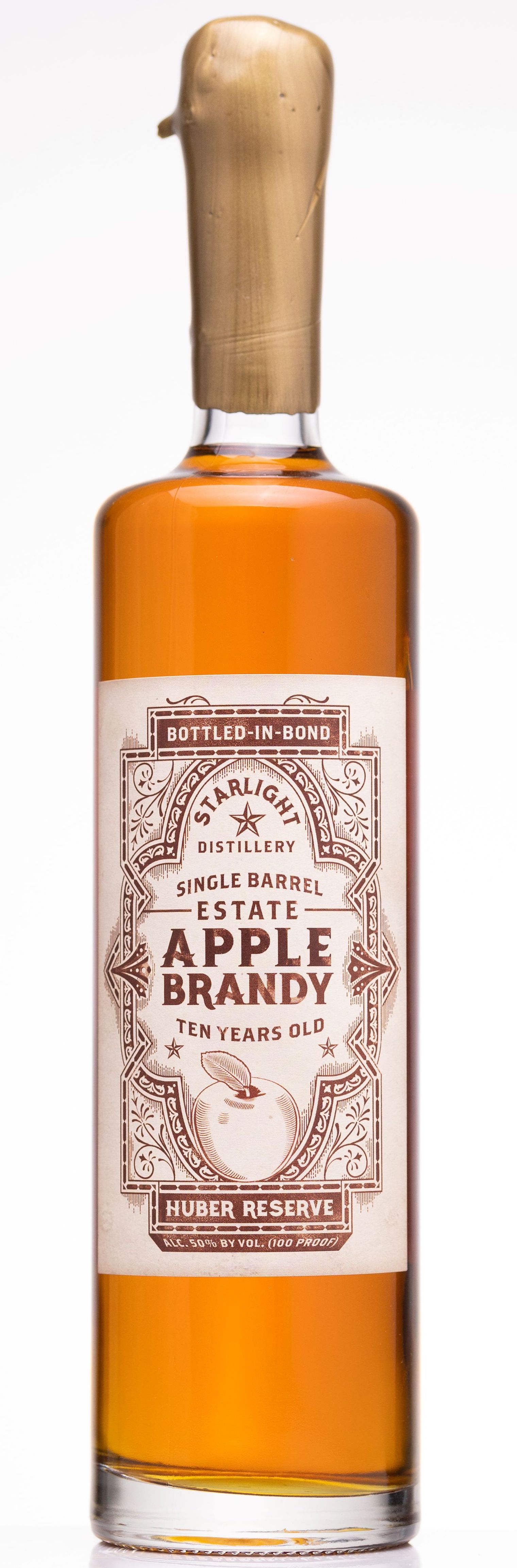 Estate Apple Brandy, Single Barrel, BottledInBond, 10YearOld Huber Reserve, Starlight