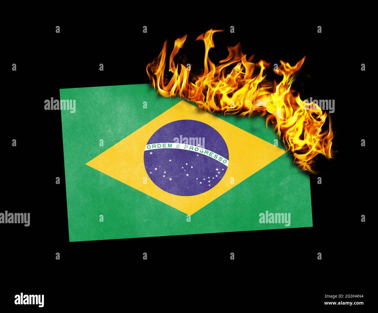 Flag burning Brazil Stock Photo Alamy