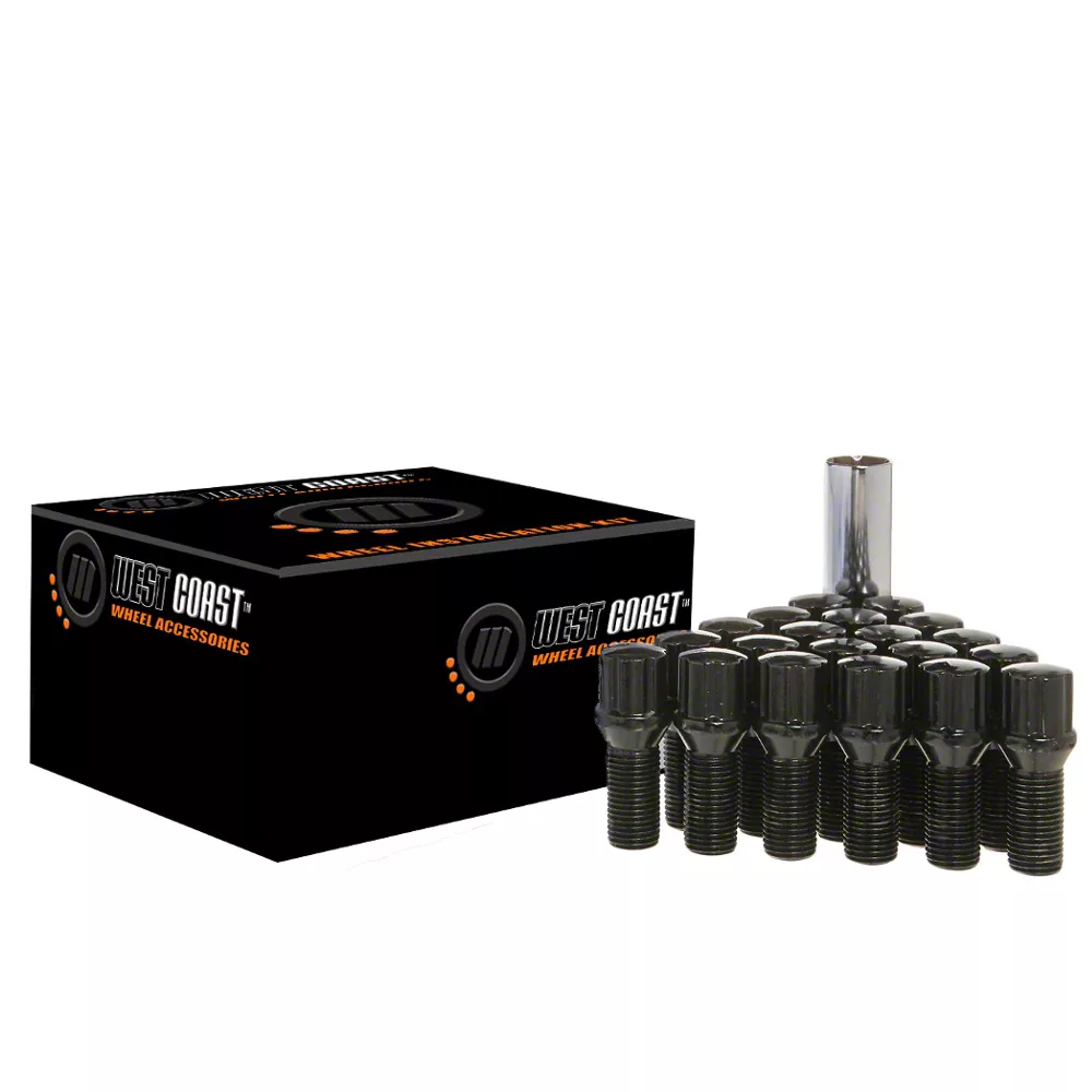 Jeep Cherokee Black Conical Spline Lug Bolt Kit; M12x1.25; Set of 20