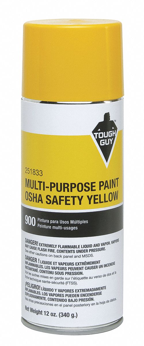 TOUGH GUY Spray Paint in Gloss OSHA Safety Yellow for Masonry, Metal Yellow Safety Paint For Floor Dries to the touch in. Durable coating is rust, corrosion and chip resistant. Applies easily and features a high output tip that can be sprayed at any angle. For use on interior/exterior surfaces including metal, wood, concrete and masonry. Dries to the touch in 2 to 4 hours and covers up to 440 sq ft per gallon. Buy 5600 acrylic. Yellow Safety Paint For Floor.